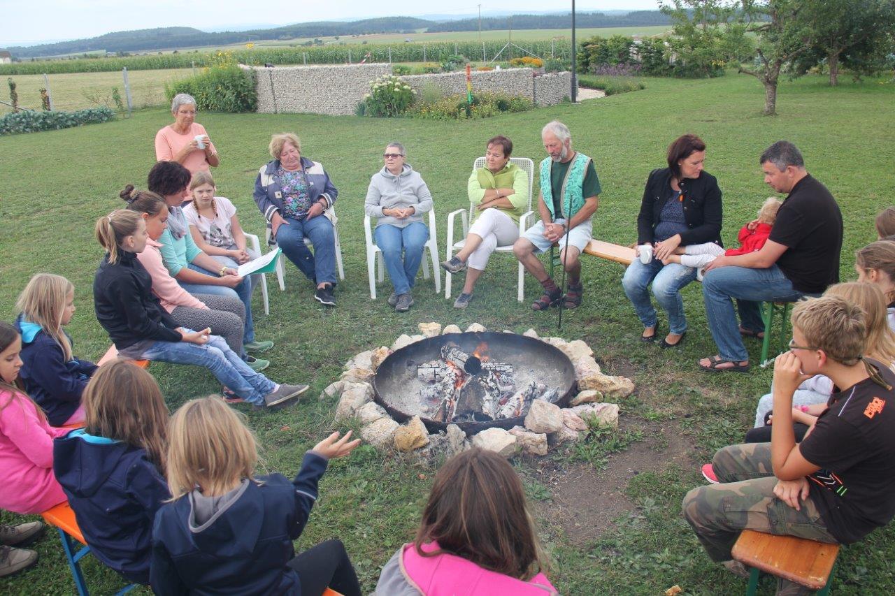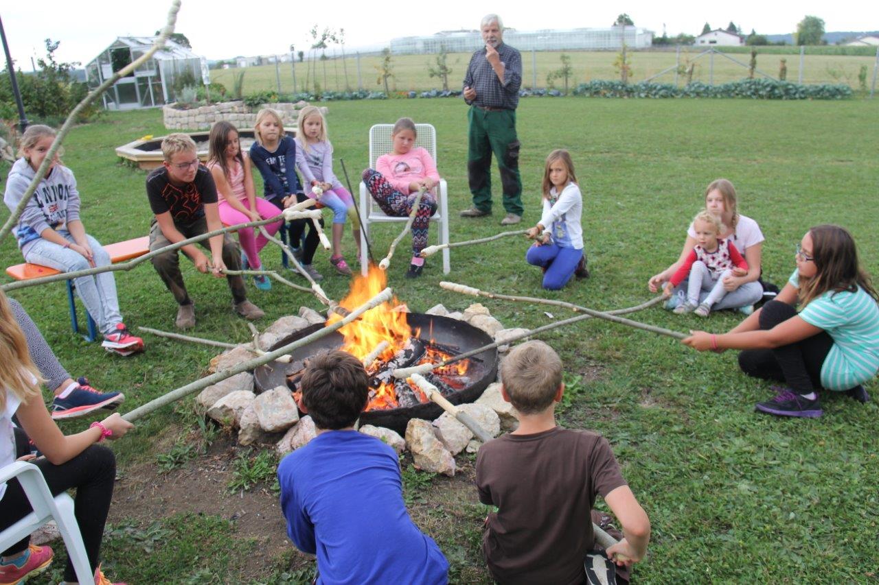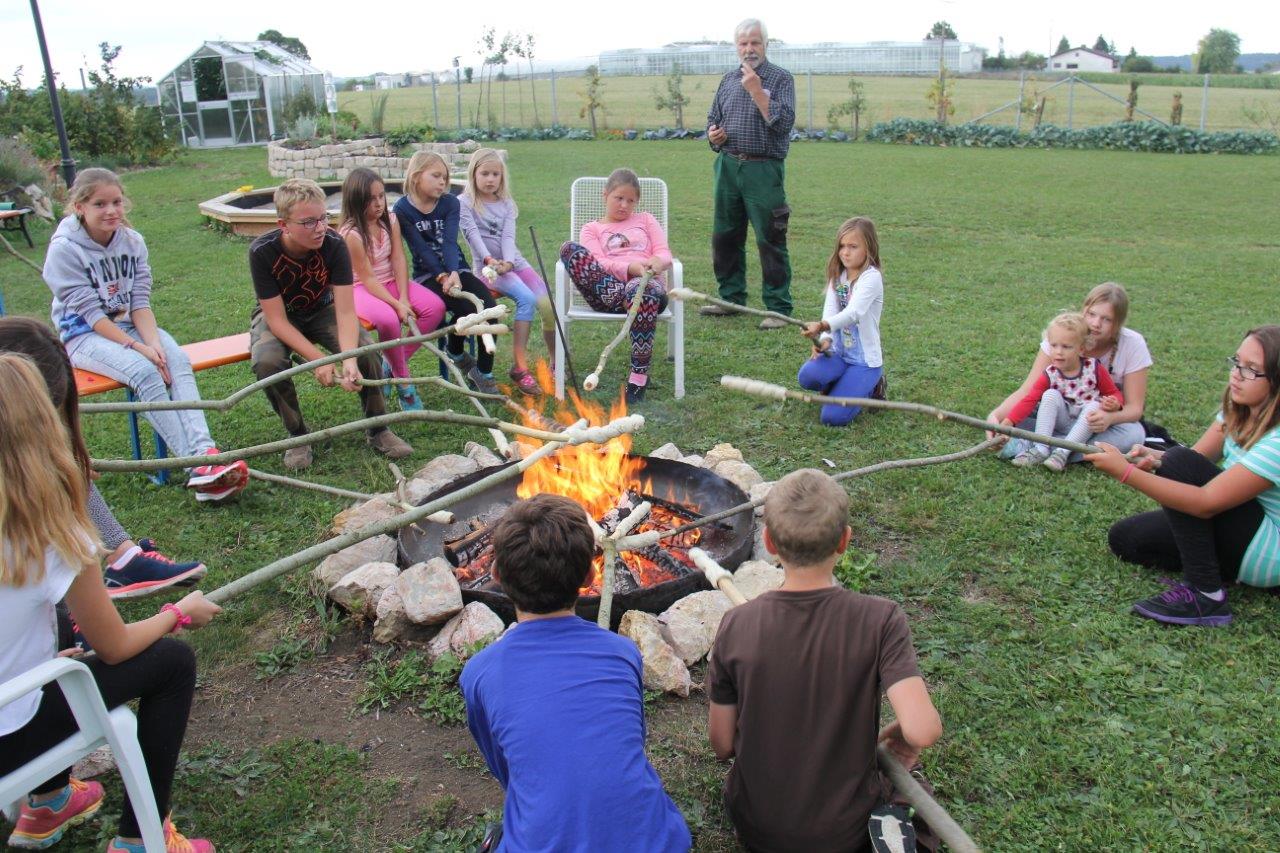 Den frischgepressten Apfelsaft, verfeinert mit Kräutern und die heißen Kartoffeln mit dem Kräuterquarkdipp ließen sich die Kinder munden. Rund um das Lagerfeuer las Barbara Dangel noch das Kräutermärchen „Wie das Gänseblümchen zu seinem Namen kam“ vor. Zu guter Letzt bepflanzten alle gemeinsam den neuen Kräutermond mit verschiedenen Kräutern.